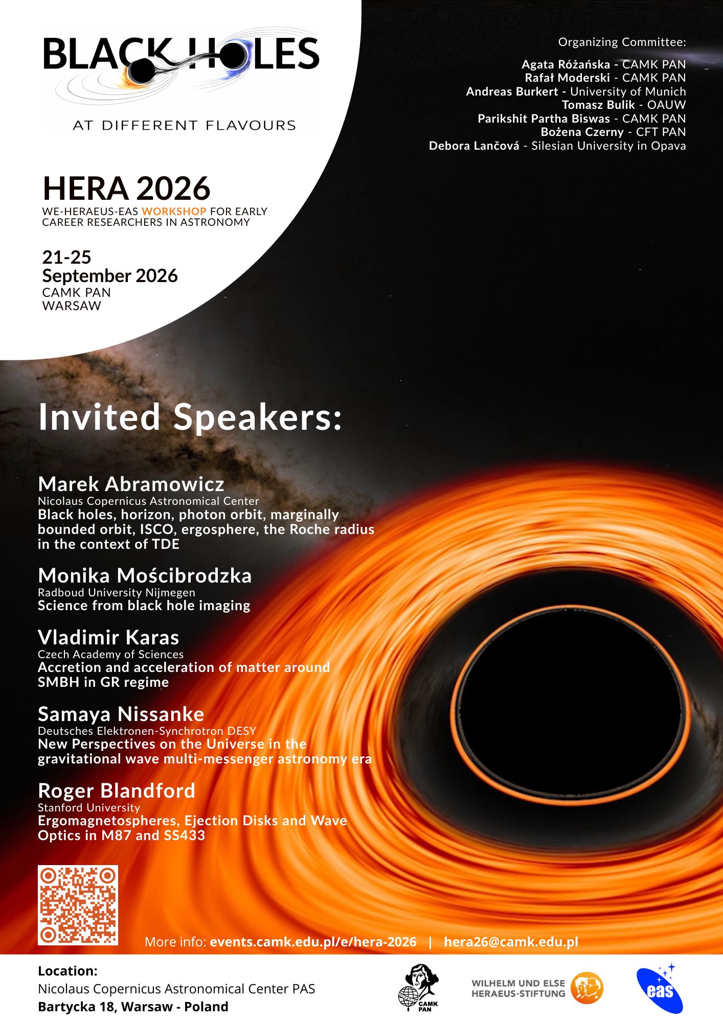 Help us spread the word about “Black Holes at Different Flavours” – the HERA 2026 workshop for early-career researchers in astronomy, taking place on 21–25 September 2026 at CAMK PAN in Warsaw.